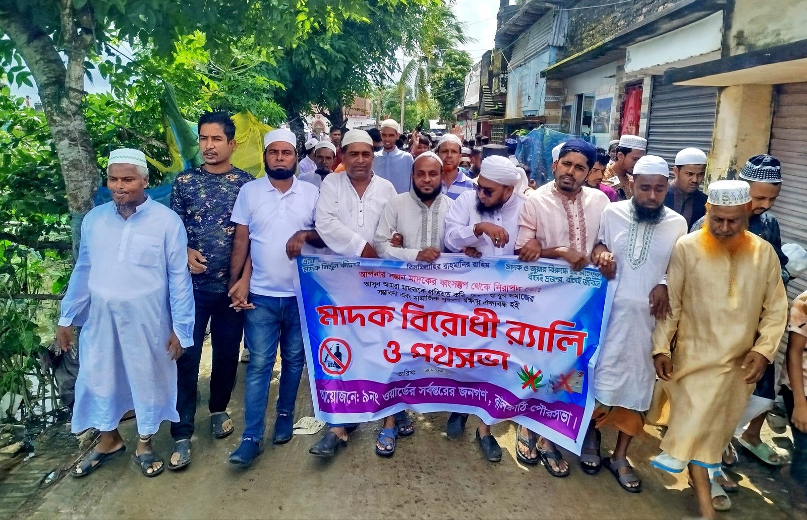 “আসুন আমরা মাদককে প্রতিহত করি, তরুন ও যুব সমাজের সম্ভাবনা এবং সামাজিক শৃঙ্খলা রক্ষায় ঐক্যবদ্ধ হই” এই শ্লোগানে ঝালকাঠিতে মাদক বিরোধী র‍্যালী ও পথসভা অনুষ্ঠিত হয়েছে। শুক্রবার জুম্মার নামাজ শেষে ৯নং ওয়ার্ডের সর্বস্তরের জনগনের ঐক্যবদ্ধ আয়োজনে এ র‍্যালি ও পথসভা অনুষ্ঠিত হয়। র‍্যালীটি বায়তুল ফালাহ জামে মসজিদ, কলাবাগান থেকে শুরু হয়ে কলাবাগন, লঞ্চঘাট, বন্দাঘাট সহ শহরের বিভিন্ন সড়ক প্রদিক্ষন করে একই স্থানে এসে শেষ হয়।