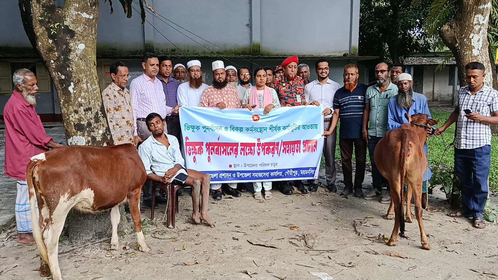 ময়মনসিংহের গৌরীপুর উপজেলা সমাজসেবা কার্যালয়ের উদ্যোগে ও উপজেলা প্রশাসনের আয়োজনে ভিক্ষাবৃত্তিতে নিয়োজিত জনগোষ্ঠীর পুনর্বাসন ও বিকল্প কর্মসংস্থান কর্মসূচির আওতায় গরু বিতরণ করা হয়েছে।