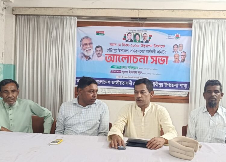 আসন্ন মহান মে দিবসকে সামনে রেখে দিবসটি পালনে ময়মনসিংহের গৌরীপুরে উপজেলা শ্রমিকদলের উদ্যোগে এক প্রস্তুতিমুলক সভা অনুষ্ঠিত হয়েছে। শুক্রবার (বিকাল) গৌরীপুরের নেক্সাস রেস্টুরেন্টে আয়োজিত এ সভায় মে দিবসের কর্মসূচি সফল করতে বিভিন্ন সিদ্ধান্ত গ্রহণ করা হয়।