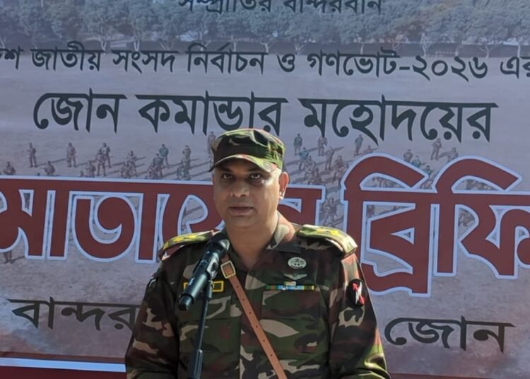 পার্বত্য জেলা বান্দরবানের ৩০০ নং আসনে সুষ্ঠু নির্বাচনের লক্ষ্যে বান্দরবান সেনা জোনের জোন কমান্ডার মহোদয় এর উদ্যোগে এক গুরুত্বপূর্ণ মতবিনিময় সভা ও নির্বাচন ডিউটি পরিদর্শন ও মহড়া প্রদর্শন অনুষ্ঠিত হয়েছে।