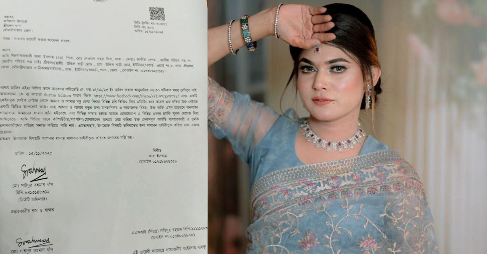 মডেল জারার সম্মানহানির অভিযোগে শ্রীমঙ্গলে জিডি