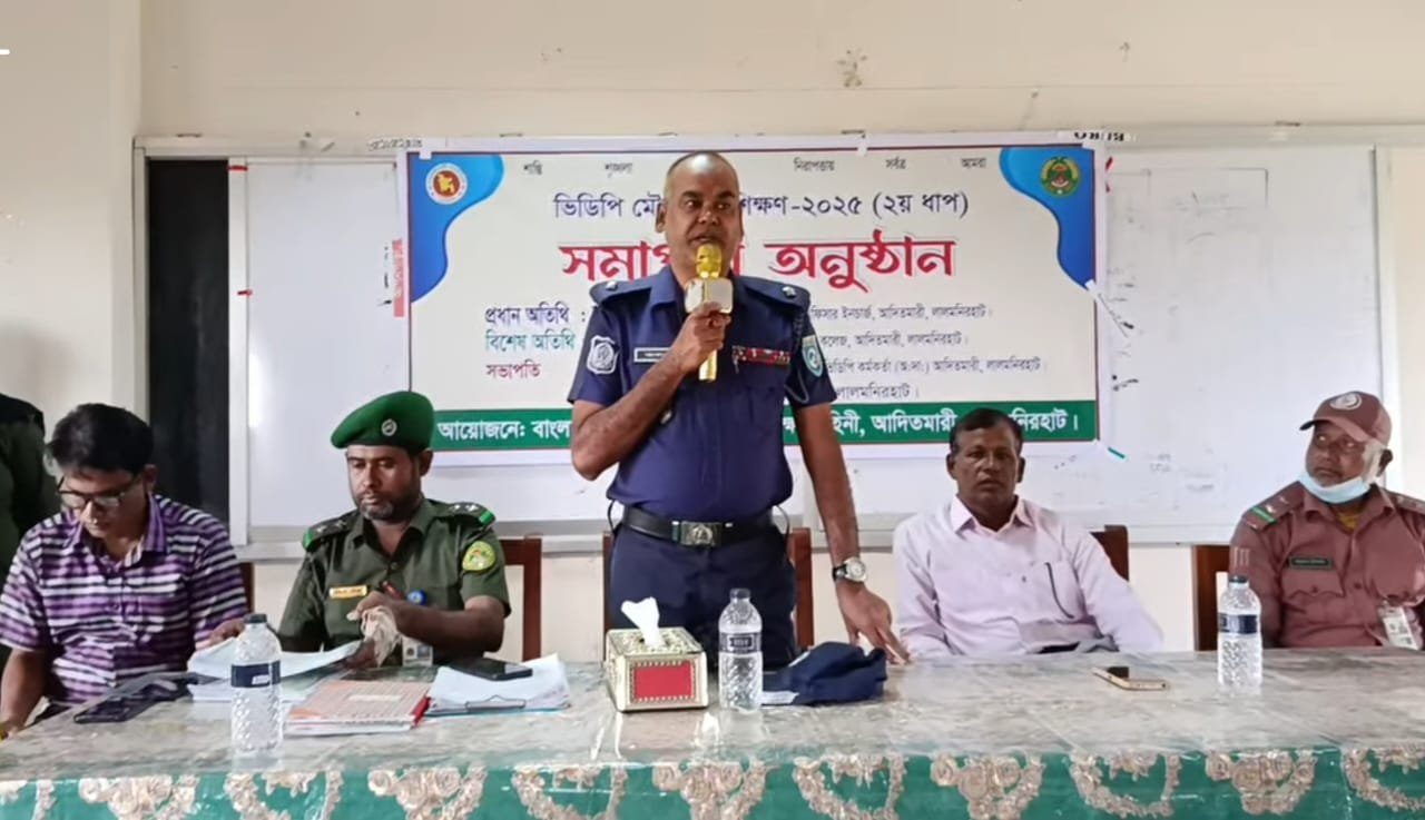 এ সময় বাংলাদেশ আনসার ও গ্রাম প্রতিরক্ষা বাহিনী আদিতমারীর অন্যান্য কর্মকর্তা ও কর্মচারী ও প্রশিক্ষণার্থীগণ উপস্থিত ছিলেন।