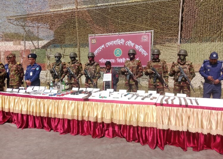 ‎শরীয়তপুর জেলার বিভিন্ন স্থানে বাংলাদেশ সেনাবাহিনী ও পুলিশের সমন্বয়ে পরিচালিত বিশেষ যৌথ অভিযানে বিপুল পরিমাণ দেশি–বিদেশি আগ্নেয়াস্ত্র, গোলাবারুদ ও মাদকদ্রব্য উদ্ধার করা হয়েছে। এ ঘটনায় তিনজনকে আটক করা হয়েছে।