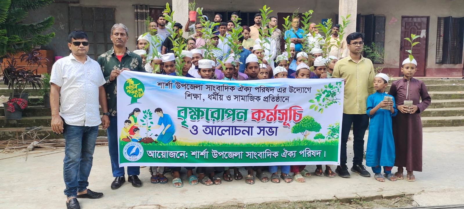 যশোরের শার্শা উপজেলা সাংবাদিক ঐক্য পরিষদের উদ্যোগে শিক্ষা,ধর্মীয় ও সমাজিক প্রতিষ্ঠানে বৃক্ষরোপণ কর্মসূচি এবং আলোচনা সভা অনুষ্ঠিত হয়েছে।