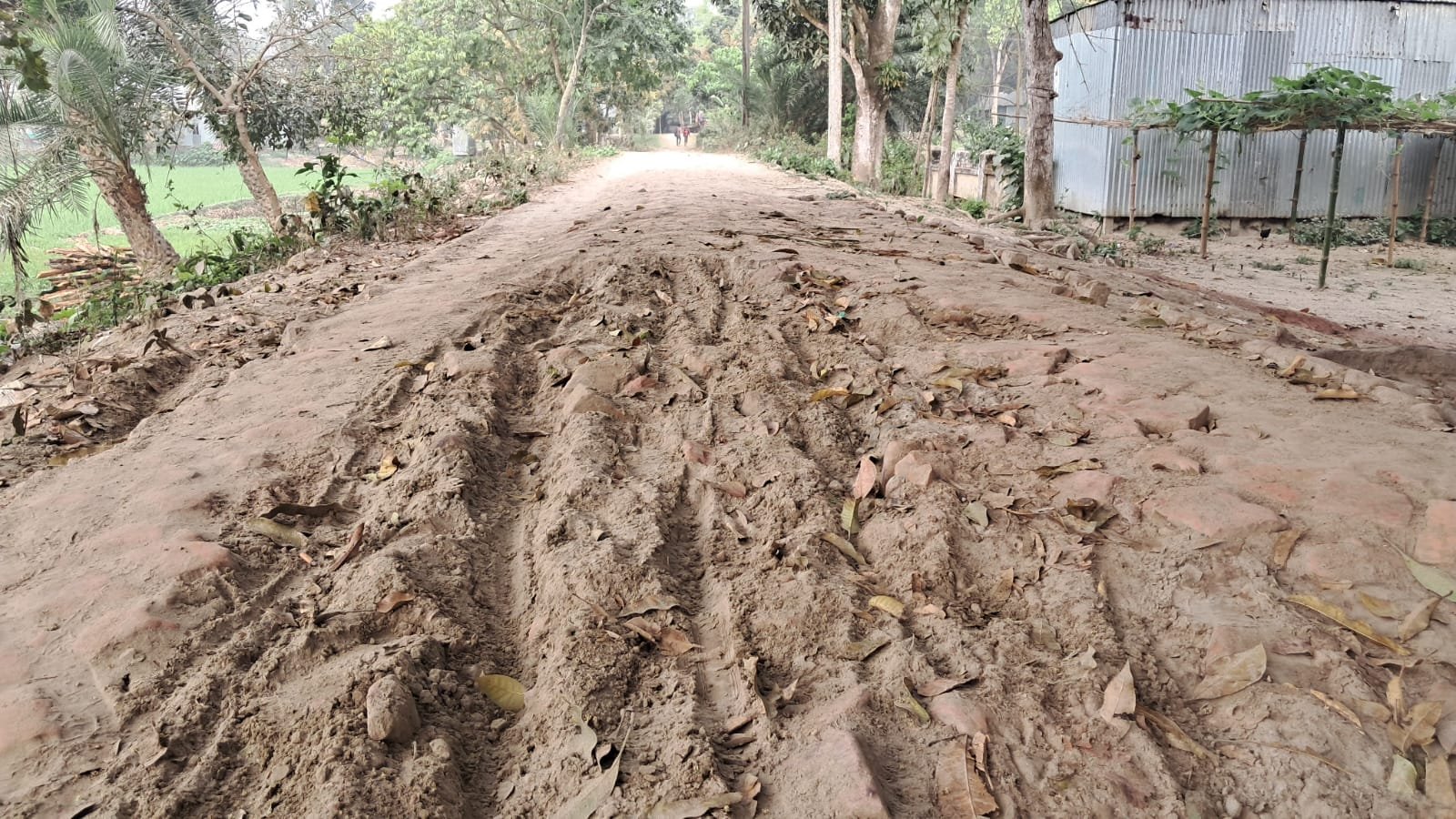 কিন্তু গুরুত্বপূর্ণ এই সড়কটির বেহাল চিত্র স্থানীয়দের দুর্ভোগ বাড়িয়ে তুলেছে। সড়কের প্রায় ৯০ শতাংশ অংশেই নেই ইটের সোলিং, বেশির ভাগ জায়গায়ই বড় বড় খানাখন্দ সৃষ্টি হয়েছে। ফলে যান চলাচল হয়ে পড়েছে অত্যন্ত ঝুঁকিপূর্ণ। বিশেষ করে ব্যাটারিচালিত রিকশাগুলো খানাখন্দে জমে থাকা বালুতে চাকা গেঁড়ে আটকে যাচ্ছে, যাত্রীদের নেমে ঠেলতে হচ্ছে যানবাহন। এতে যেমন সময় নষ্ট হচ্ছে, তেমনি বাড়ছে দুর্ঘটনার আশঙ্কাও।