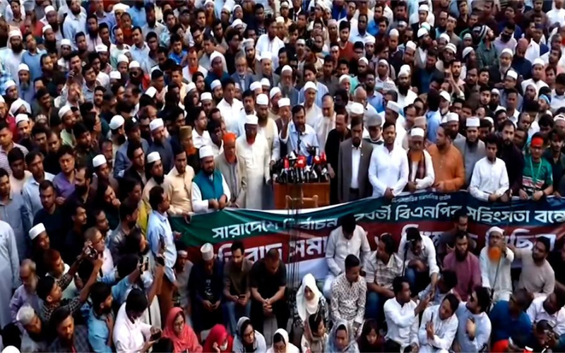 এ সময় খেলাফত মজলিস-এর আমির মাওলানা মামুনুল হক বলেন, জনগণের ভোটাধিকার ক্ষুণ্ন করা হয়েছে এবং নির্বাচন-পরবর্তী সময়ে নির্যাতনের অভিযোগ বাড়ছে।