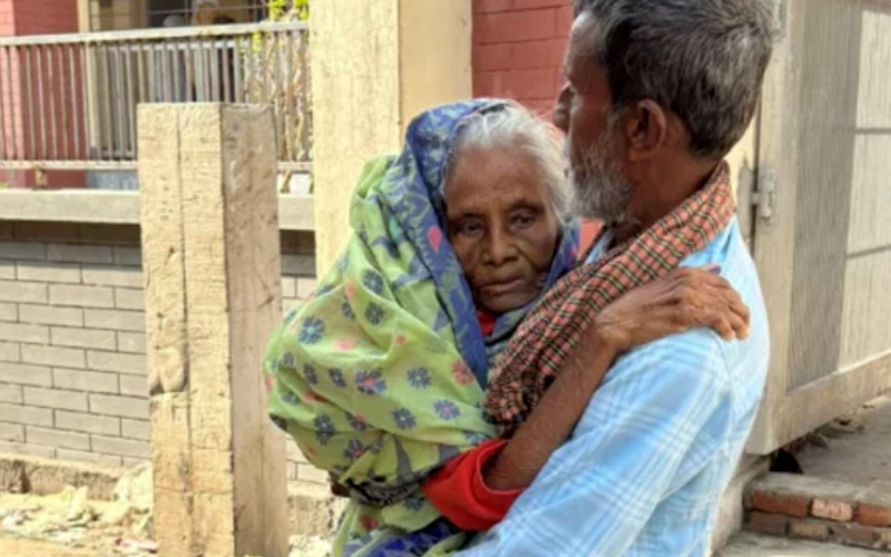 মুন্সীগঞ্জের গজারিয়ায় ছেলের কোলে চড়ে ভোটকেন্দ্রে এসে ভোটাধিকার প্রয়োগ করেছেন প্রবীণ নারী আমেনা বেগম। পরিবারের দাবি, তার বয়স প্রায় ১৩৫ বছর।