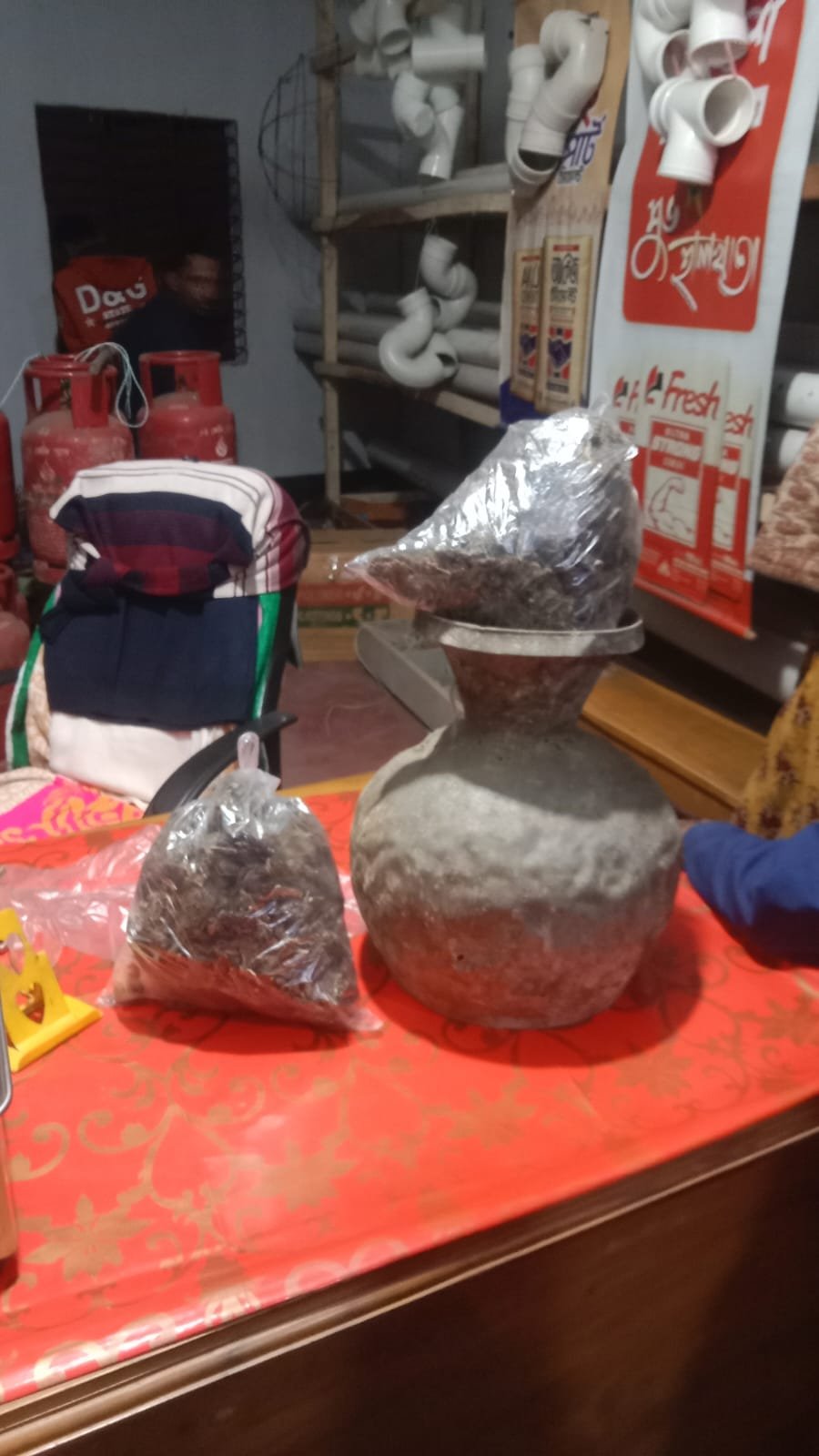 খবর পেয়ে বাউফল থানার এস আই মোঃ জালাল উদ্দিন এর নেতৃত্বে পুলিশ ঘটনাস্থলে এসে জাকির হোসেনকে জিজ্ঞেসাবাদ করলে তার দেয়া তথ্য অনুযায়ি বাবুর হাট এলাকার মন্নান মৃধার বাড়িতে অভিযান চালিয়ে আবু বক্করের (৫০) ঘরের উওর পাশের বাগানের ভিতরে মাটিতে পুতে রাখা কলসের ভিতর থেকে ৮৫০ গ্রাম গাঁজা উদ্বার করে। এ সময় পুলিশ আবু বক্করকে না পেয়ে তার স্ত্রী রোকেয়া বেগমকে(৪৩) আটক করে।