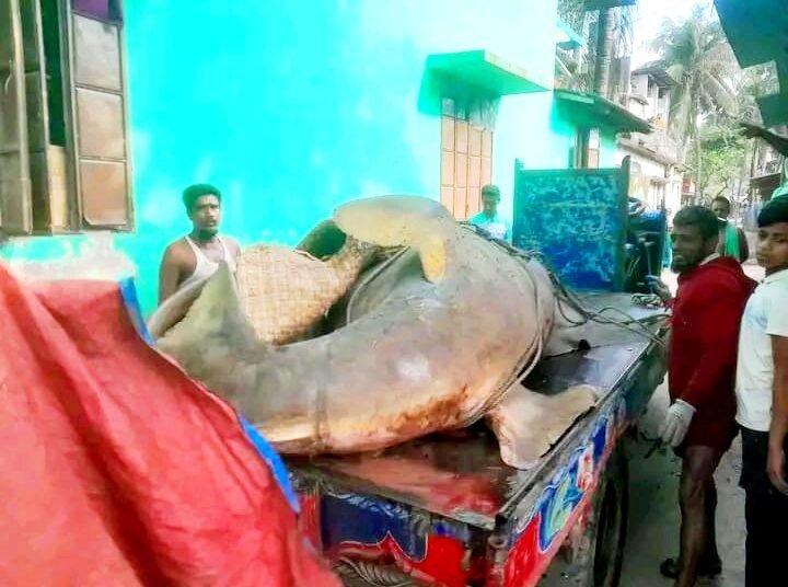 স্থানীয় উন্নয়নকর্মী এইচএম বাদল জানান, বঙ্গপসাগর থেকে কাঁঠালিয়া উপজেলাটি মাত্র ৬০কিলোমিটার নিকটবর্তী। এখানকার অনেক জেলেই বঙ্গপসাগরে নিয়মিতভাবে মাছ শিকারে যান। এমন একটি দল মঙ্গলবার ভোরে বঙ্গপসাগর থেকে ধরা এই বিশাল মাছটি নিয়ে আমুয়া মৎস বন্দরে আসেন। মাছটির ওজন আনুমানিক ২৫ মন। পরে এটি নিলামে ওঠালে আমুয়ার মাছের আড়দ্দার আব্দুল হাই সরদার আড়াই লাখ টাকায় মাছটি কিনে নেন। পরে এই দানবদেহি মাছটিকে বেশি দামে বিক্রির জন্য ইঞ্জিন চালিত ভ্যানে উঠিয়ে পিরোজপুর জেলার পারেরহাট মৎস বন্দরে নিয়ে যান মাছের আড়দ্দার আব্দুল হাই।