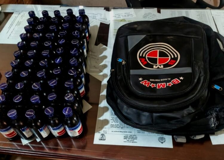 তল্লাশিকালে পিকআপ গাড়িতে থাকা একটি কালো রঙের স্কুল ব্যাগের ভেতর থেকে ১০০ মিলিলিটার করে মোট ৫৫ বোতল ফেনসিডিল উদ্ধার করা হয়। উদ্ধারকৃত ফেনসিডিলের আনুমানিক বাজারমূল্য (৫৫×২৫০০) মোট ১,৩৭,৫০০ টাকা বলে জানায় পুলিশ।