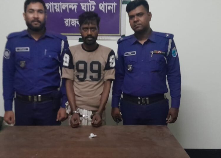 থানা সূত্রে জানা যায়, সোমবার (২ মার্চ) বিকেলে এসআই মো. বিল্লাল হোসেন সঙ্গীয় ফোর্সসহ উপজেলাধীন দৌলতদিয়া পতিতাপল্লীর ১নং গেইট সংলগ্ন সিরাজের চায়ের দোকানের সামনে রাস্তার উপর থেকে জাহাঙ্গীর শেখ (২৭) নামে এক মাদক ব্যবসায়ীকে ১ গ্রাম হেরোইনসহ হাতেনাতে গ্রেপ্তার করা হয়।