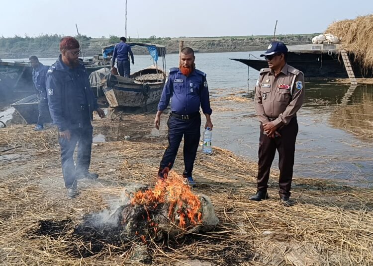 সোমবার (১৯ জানুয়ারি) যমুনা নদীর যমুনা সেতু সংলগ্ন বিভিন্ন এলাকা থেকে পরিত্যক্ত অবস্থায় এসব নিষিদ্ধ জাল জব্দ করা হয়। পরে জব্দকৃত কারেন্ট জাল আগুনে পুড়িয়ে তা ধ্বংস করা হয়।