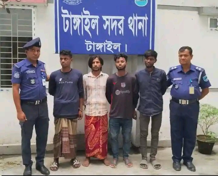 গ্রেপ্তারকৃতরা হলেন, টাঙ্গাইল শহরে দক্ষিন কলেজপাড়া মহিষাখোলা নোটারি পল্লীর মৃত আশরাফ আলীর ছেলে মোঃ মোকাদ্দেছ আলী(২৮), মোঃ দুলাল মিয়ার ছেলে মোঃ সোহাগ (৩০), মোঃ গিয়াসের ছেলে বিল্লাল(২১) ও মৃত মিজানুরের ছেলে শুভ(২২)। আসামীদের বি*রু*দ্ধে পরবর্তী আইনগত ব্যবস্থা প্রক্রিয়াধিন।