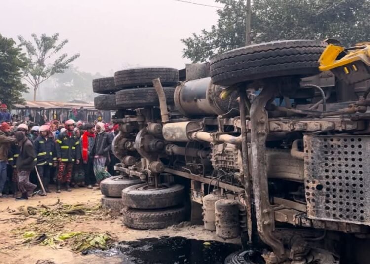 রাজশাহীর পুঠিয়া উপজেলার ঝলমলিয়া বাজারে বালুবাহী একটি ট্রাক নিয়ন্ত্রণ হারিয়ে উল্টে গেলে চারজন নিহত এবং একজন আহত হয়েছেন। দুর্ঘটনাটি বৃহস্পতিবার সকালে ঘটে।