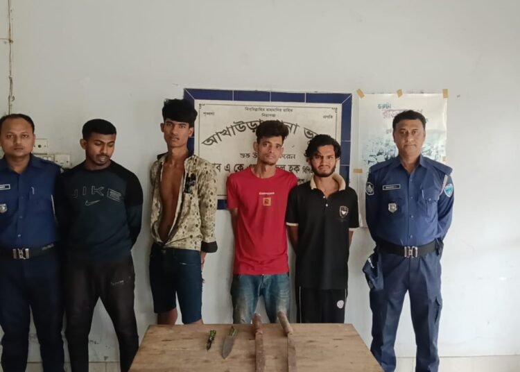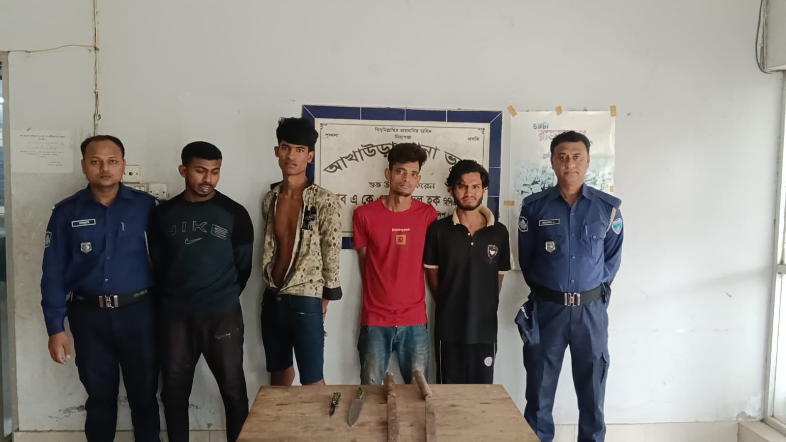 ব্রাহ্মণবাড়িয়ার আখাউড়ায় ডাকাতি প্রস্তুতিকালে দেশীয় অস্ত্রসহ ৪ ডাকাতকে গ্রেফতার করেছে পুলিশ। পৌর শহরের লাল বাজার রেলক্রসিং এলাকা থেকে তাদেরকে গ্রেফতার করা হয়।