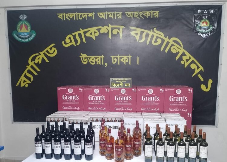 এরই ধারাবাহিকতায় অদ্য ১০ এপ্রিল ২০২৬ ইং আনুমানিক ০২৩০ ঘটিকার সময় র্যাব-১, সিপিসি-১, উত্তরা ঢাকা গোপন সংবাদ ও বিশস্ত সূত্রের মাধ্যমে জানতে পারেন যে, ডিএমপি ঢাকার য়াত্রাবাড়ী এলাকা হতে কতিপয় ব্যাক্তি বিপুল পরিমাণ অবৈধ মাদকদ্রব্য নিয়ে প্রাইভেটকার যোগে গুলশানের দিকে আসবে। তাৎক্ষণিক আভিযানিক দলটি সঙ্গীয় অফিসার ও ফোর্সের সহায়তায় ডিএমপি ঢাকার গুলশান থানাধীন গুলশান-১, রোড নং-০২, বাড়ী নং-২২ এর সামনে পাকা রাস্তার উপর পৌছাইয়া টহল টিমের সহায়তায় চেকপোস্ট স্থাপন করিয়া তল্লাশী কার্যক্রম পরিচালনা করা কালীন একই তারিখ ০৩২২ ঘটিকার সময় ০১ টি খয়েরী রংয়ের প্রাইভেটকার সহ আসামী মোঃ জাহাংগীর আলম (৪৬) ’কে ৪১৮.৫ লিটারবিদেশী মদ যাহারা আনুমানিক মূল্য ৩৩,৪৮,০০০/- ( তেত্রিশ লক্ষ আটচল্লিশ হাজার টাকা) সহ গ্রেপ্তার করা হয়।