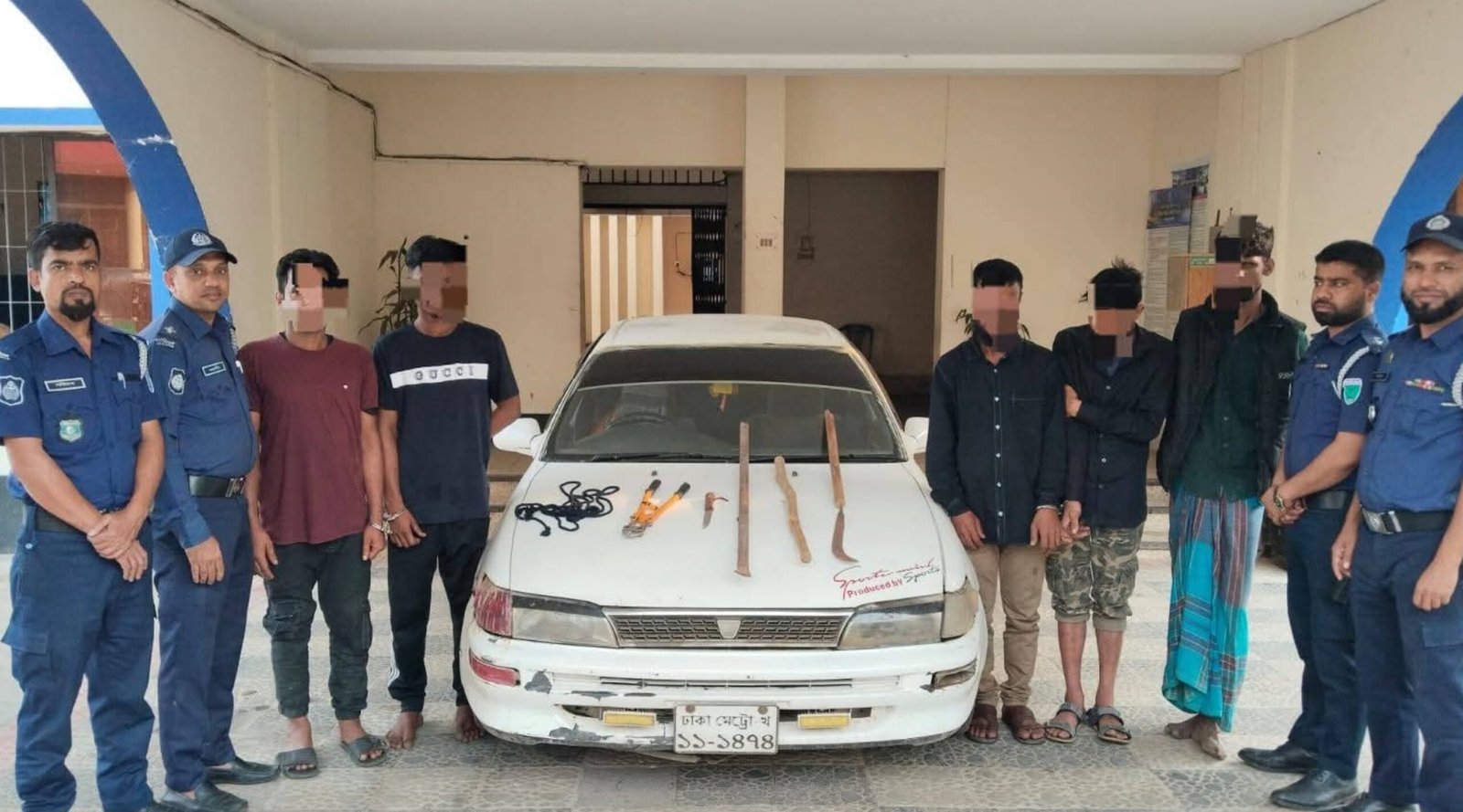 অভিযানকালে তাদের ব্যবহৃত প্রাইভেট কার তল্লাশি করে একটি কাটার মেশিন,একটি ধারালো দা,একটি ছুরি, একটি লোহার পাইপ, একটি বাঁশের লাঠি এবং প্রায় ২৫ ফুট লম্বা একটি রশি উদ্ধার করে জব্দ করা হয়।