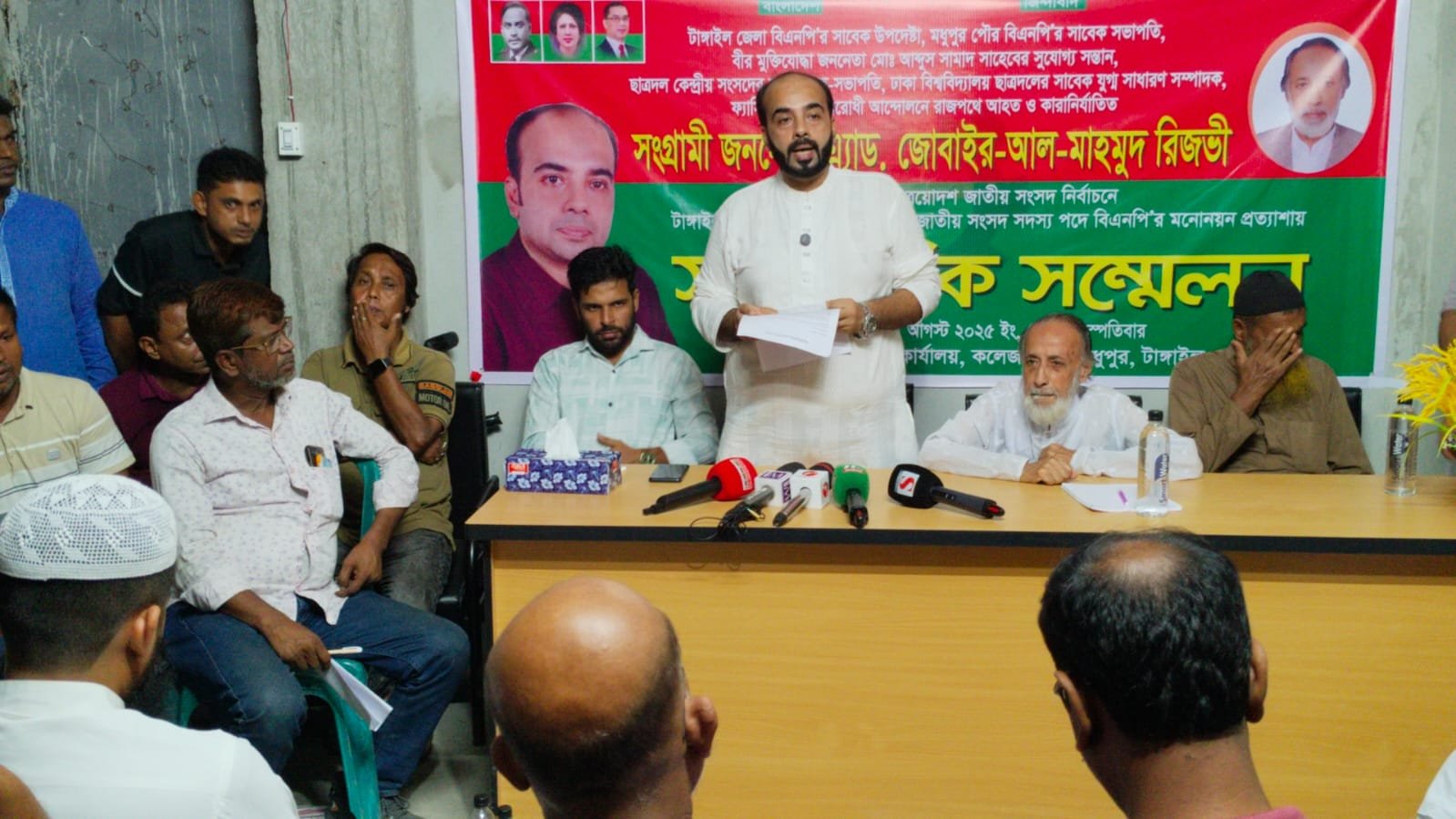 বাংলাদেশ জাতীয়তাবাদী দল বিএনপির সম্ভাব্য প্রার্থী অ্যাডভোকেট জোবাইর-আল-মাহমুদ (রিজভী আহমেদ) বৃহস্পতিবার মধুপুরে এক সংবাদ সম্মেলনে তাঁর বাবা, বীর মুক্তিযোদ্ধা মো. আব্দুস সামাদের রাজনৈতিক ও সংগ্রামী জীবনের বিস্তৃত ইতিহাস তুলে ধরেন। একই সঙ্গে আসন্ন জাতীয় সংসদ নির্বাচনকে সামনে রেখে নিজের প্রার্থী মনোনয়ন প্রসঙ্গেও বক্তব্য রাখেন। সংবাদ সম্মেলনের শুরুতে তিনি মহান মুক্তিযুদ্ধের বীর সন্তান এবং চব্বিশের আন্দোলনের শহীদদের শ্রদ্ধার সঙ্গে স্মরণ করেন। রাজনৈতিক জীবনের শুরু ও মুক্তিযুদ্ধে ভূমিকা অ্যাডভোকেট জোবাইর-আল-মাহমুদ রিজভী আহমেদ জানান, তাঁর বাবা ১৯৪৬ সালের ১ সেপ্টেম্বর টাঙ্গাইলের মধুপুর উপজেলার আউশনারা ইউনিয়নের এক সম্ভ্রান্ত মুসলিম রাজনৈতিক পরিবারে জন্মগ্রহণ করেন। তাঁর দাদা মরহুম জবান আলী সরকার ছিলেন ভূস্বামী, সমাজ সংস্কারক ও রাজনৈতিক ব্যক্তিত্ব। ১৯৬২ সালে কুখ্যাত হামিদুর রহমান শিক্ষা কমিশনের বিরুদ্ধে আন্দোলনে রাজপথে নেমে আসেন আব্দুস সামাদ। পরবর্তীতে ৬ দফা ও ১১ দফা আন্দোলনে সক্রিয় ভূমিকা রাখেন। ১৯৬৯ সালের গণঅভ্যুত্থানে সম্মুখ যোদ্ধা হিসেবে কাজ করেন এবং তৎকালীন স্বৈরশাসক আইয়ুব খানের আদেশে ১১ দিনের কারাদণ্ড ও বেত্রাঘাতের শিকার হন। মহান মুক্তিযুদ্ধ চলাকালে তিনি ১১ নম্বর সেক্টরের কাদেরিয়া বাহিনীতে গেরিলা যোদ্ধা ও কোম্পানি কমান্ডারের দায়িত্ব পালন করেন। একই সঙ্গে বাহিনীর প্রধান বেসামরিক উপদেষ্টা হিসেবেও দায়িত্ব পালন করেন। যুদ্ধের সময় তাঁর বড় ভাই ইমান আলী সরকার শহীদ হন এবং পাকিস্তানি সেনারা তাঁদের পৈতৃক বাড়ি দু’বার আগুন দিয়ে পুড়িয়ে দেয়। স্বাধীনতার পর সংগ্রাম স্বাধীনতার পর দেশ পুনর্গঠনে আত্মনিয়োগ করলেও শাসকগোষ্ঠীর বিরোধিতায় রক্ষীবাহিনীর নির্যাতনের শিকার হন আব্দুস সামাদ। ১৯৭৩ সালে ঢাকা বিশ্ববিদ্যালয়ের জনপ্রিয় ছাত্রনেতা হিসেবে ডাকসুর জিএস পদে জয় লাভ করেন। একই বছরে তাঁর রাজনৈতিক প্রভাবে মধুপুর আসনে জাসদ প্রার্থী সংসদ সদস্য নির্বাচিত হন, ফলে আওয়ামী লীগ আসন হারায়। ১৯৭৪ থেকে ১৯৭৯ সাল পর্যন্ত তিনি বিভিন্ন কারাগারে বন্দী ছিলেন। এরপর ১৯৭৯, ১৯৮১ (উপনির্বাচন), ১৯৮৬ ও ১৯৯১ সালের জাতীয় সংসদ নির্বাচনে জাসদ থেকে প্রতিদ্বন্দ্বিতা করেন। ১৯৯৩ সালে তৎকালীন প্রধানমন্ত্রী ও বিএনপির চেয়ারপারসন বেগম খালেদা জিয়ার হাত ধরে বিএনপিতে যোগ দেন। তিনি দীর্ঘদিন মধুপুর পৌর বিএনপির সভাপতি ও টাঙ্গাইল জেলা বিএনপির উপদেষ্টা হিসেবে দায়িত্ব পালন করেন। তিনি ১৯৯৬, ২০০১, ২০০৮ ও ২০১৮ সালের নির্বাচনে বিএনপির মনোনয়ন প্রত্যাশী ছিলেন এবং সর্বশেষ ২০১৮ সালে মধুপুর-ধনবাড়ি জাতীয় সংসদ নির্বাচন পরিচালনা কমিটির আহ্বায়ক হিসেবে দা
