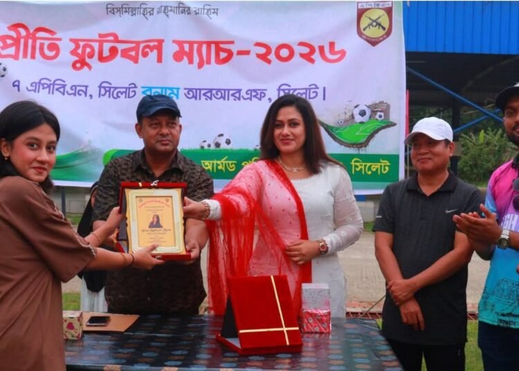 সৌহার্দ্য ও ক্রীড়ামুখর পরিবেশে অনুষ্ঠিত এক প্রীতি ফুটবল ম্যাচে ৭ আর্মড পুলিশ ব্যাটালিয়ন (৭ এপিবিএন),সিলেট ২-০ গোলে আরআরএফ, সিলেটকে পরাজিত করে চ্যাম্পিয়ন হওয়ার গৌরব অর্জন করেছে। সোমবার (২০ এপ্রিল) বিকাল ৩টায় এ ম্যাচটি অনুষ্ঠিত হয়।