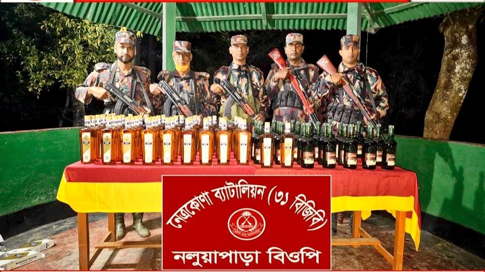 নেত্রকোণার সীমান্তে ৭১ বোতল ভারতীয় মদ উদ্ধার