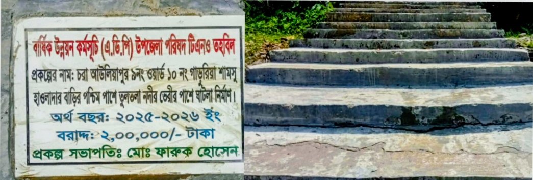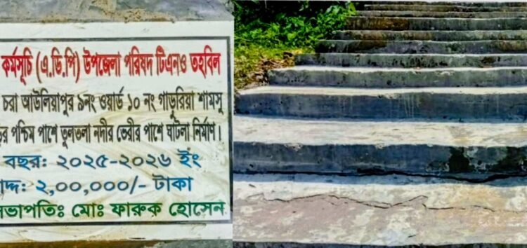 ২০২৫–২০২৬ অর্থবছরের উন্নয়ন প্রকল্পের আওতায় জনসাধারণের সুবিধার্থে ঘাটলাটি নির্মাণ করা হলেও অল্প সময়ের মধ্যেই তা নষ্ট হয়ে যাওয়ায় প্রশ্ন উঠেছে প্রকল্পের গুণগত মান নিয়ে।