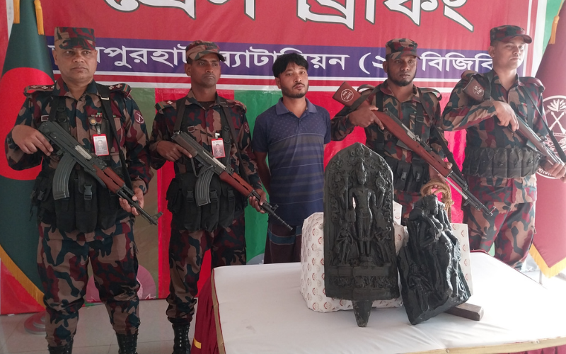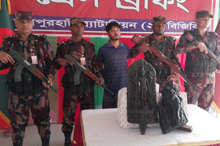 জয়পুরহাটে বিজিবির অভিযানে ২৫ কেজি কষ্টিপাথরের বিষ্ণু মূর্তি উদ্ধার