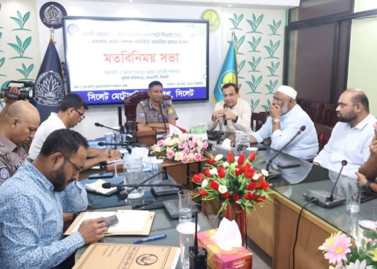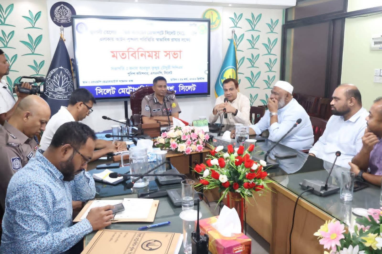 জ্বালানি তেলের বৈশ্বিক সংকটের প্রেক্ষাপটে সিলেট মেট্রোপলিটন এলাকায় আইন-শৃঙ্খলা পরিস্থিতি স্বাভাবিক রাখার লক্ষ্যে মতবিনিময় সভা অনুষ্ঠিত হয়েছে।