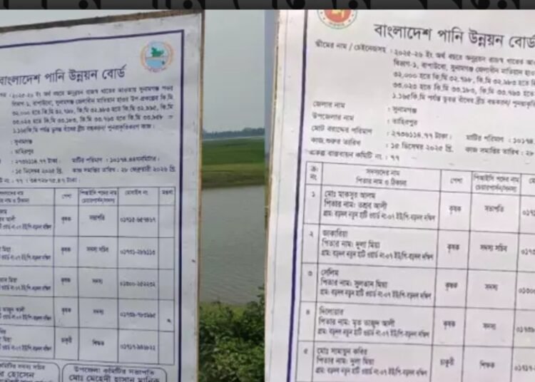 সুনামগঞ্জের তাহিরপুর উপজেলার মাটিয়ান হাওর রক্ষা বাঁধের আলমখালি ক্লোজার প্রকল্পে বরাদ্দের অর্থ নিয়ে এক রহস্যজনক পরিস্থিতির সৃষ্টি হয়েছে। মাত্র ২৪ ঘণ্টার ব্যবধানে প্রকল্পের সাইনবোর্ডে বরাদ্দের পরিমাণ ৭ লাখ টাকা বাড়িয়ে দেওয়া হয়েছে, যা নিয়ে স্থানীয় কৃষকদের মধ্যে ব্যাপক ক্ষোভ ও সন্দেহের দানা বেঁধেছে।