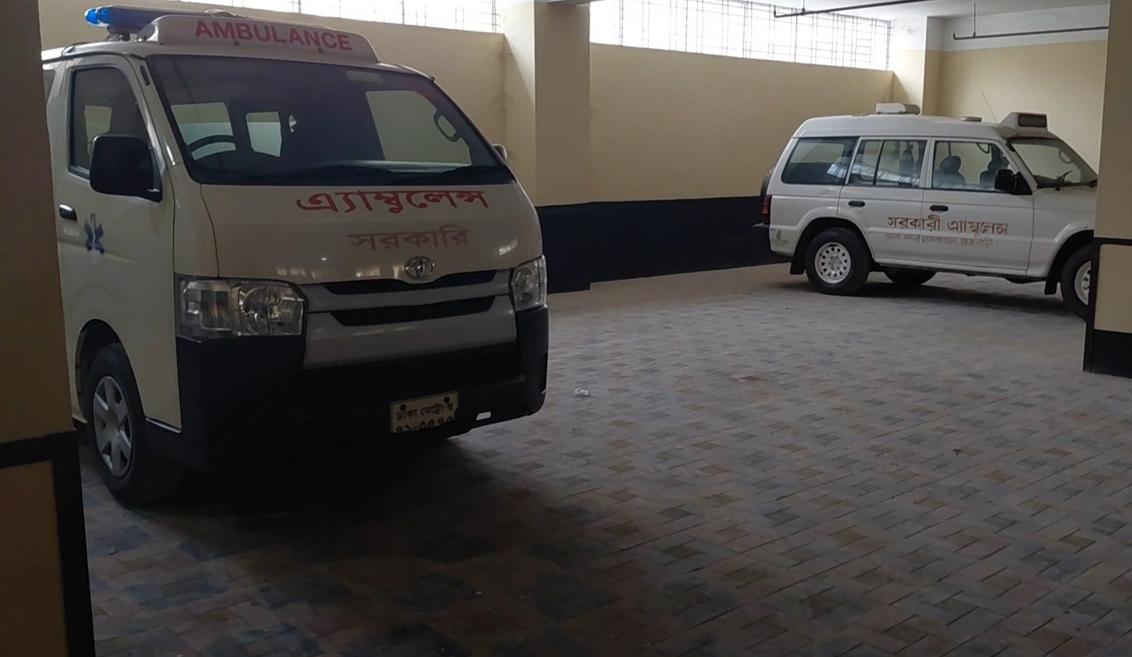 সরেজমিনে হাসপাতালে গিয়ে দেখা যায়, তিনটি অ্যাম্বুলেন্স হাসপাতা‌লের নতুন ভব‌নরি গ্যারেজে পড়ে আছে। একটির টায়ার সম্পূর্ণ বসে গেছে, গায়ে জমেছে ধুলোবালি। নতুন ভবনের সামনে একটি অ্যাম্বুলেন্স দাঁড়িয়ে আ‌ছে। বোঝা যায় সে‌টি‌তেই রোগী প‌রিবহন ক‌রে।