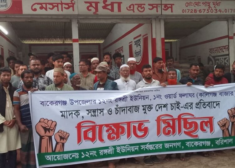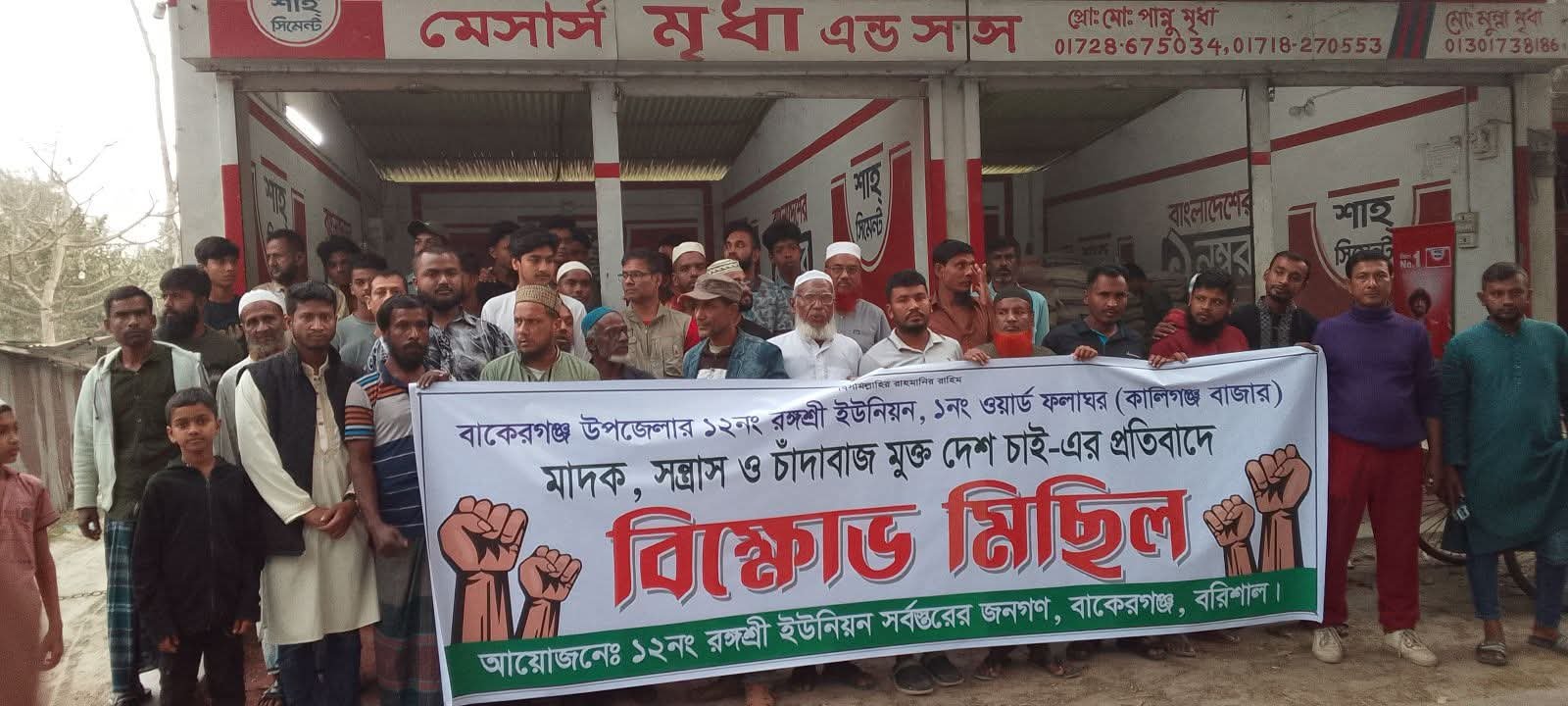 বাকেরগঞ্জের কালীগঞ্জ বাজার-এ মঙ্গলবার (২৪ ফেব্রুয়ারি) বিকেল ৫টায় মাদকবিরোধী বিক্ষোভ মিছিল ও সমাবেশ অনুষ্ঠিত হয়েছে। মিছিলটি বাকেরগঞ্জ-বরগুনা আঞ্চলিক সড়ক সংলগ্ন কালীগঞ্জ বাজার প্রদক্ষিণ করে রঙ্গশ্রী ইউনিয়ন ভূমি অফিস-এর সামনে শেষ হয়।