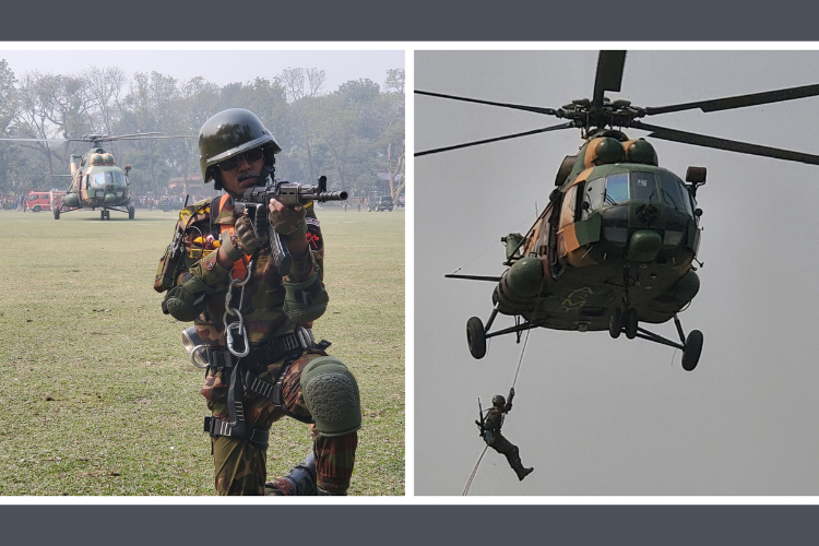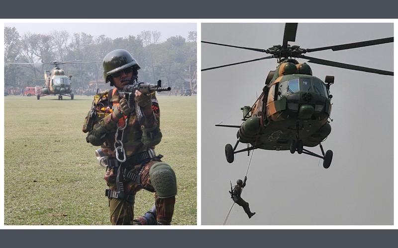 ৯ ফেব্রুয়ারী দুপুর ১২টার পর লালমনিরহাট সোহরাওয়ার্দী মাঠে বাংলাদেশ সেনাবাহিনী নির্বাচন সময় দূগর্ম এলাকা বা চরাঞ্চলে যে কোন উদ্ভুত পরিস্থিতি মোকাবেলায় এক মহড়া অনুষ্ঠান পরিচলনা করে।