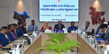 Read moreDetailsমোঃ তৌহিদুর রহমান, রাজবাড়ী প্রতিনিধি: ত্রয়োদশ জাতীয় সংসদ নির্বাচন ও গণভোটকে সামনে রেখে রাজবাড়ীতে প্রচার ও উদ্বুদ্ধকরণ সভা অনুষ্ঠিত হয়েছে। সোমবার (১৯ জানুয়ারি) রাজবাড়ী জেলা প্রশাসকের কার্যালয়ের সম্মেলন কক্ষে এ...