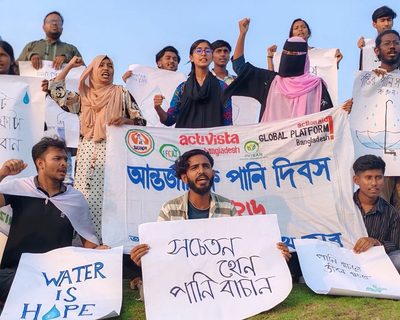 কর্মসূচিতে সংগঠনের অন্যান্য সদস্য, স্বেচ্ছাসেবক এবং স্থানীয় তরুণ-তরুণীরা অংশগ্রহণ করেন এবং সবাই মিলে সুপেয় পানির দাবিতে একাত্মতা প্রকাশ করেন।