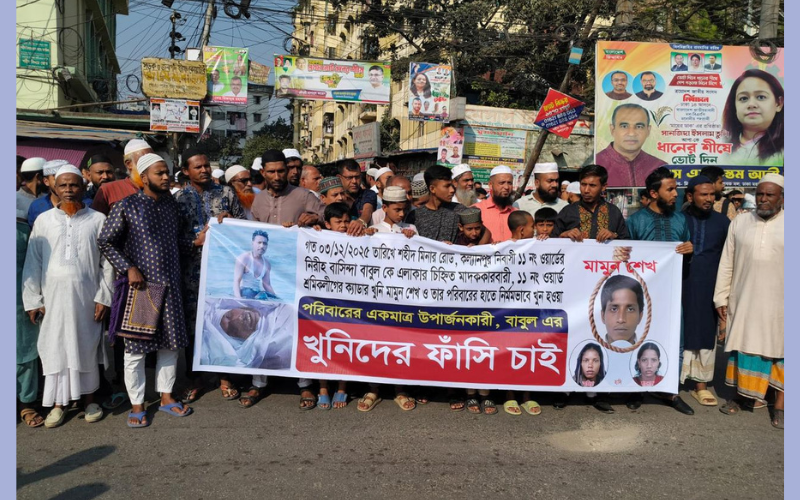 এদিকে পরিবারে একমাত্র উপার্জনকারী বাবুল হত্যার বিচার ও গ্রেফতারের দাবীতে এলাকাবাসী মানববন্ধন করেছেন। মানববন্ধনে আসামীদের দ্রুত গ্রেফতার করে ফাঁসিতে ঝুলানোর দাবী জানান।