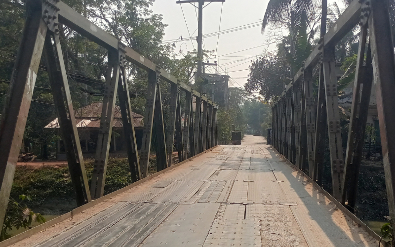 সরেজমিনে দেখা গেছে, ব্রিজের মাঝখানের পাটাতনগুলো সরে গিয়ে ফাঁক হয়ে গেছে এবং অনেক জায়গায় মরিচা ধরে ভেঙে পড়েছে। কয়েক মাস পর-পর জোড়া তালি দিয়ে গেলেও তা আবার টিকছে না। ভারী যানবাহন বাস, ট্রাক ও পরিবহনের গাড়িতো দূরের কথা, আটো বা রিকশা চলাচলের সময়ও পুরো ব্রিজটি বিকট শব্দে কাঁপতে থাকে। স্থানীয়রা জানান, রাতের অন্ধকারে অপরিচিত চালকরা যাতায়াত করতে গিয়ে প্রায়ই দুর্ঘটনার শিকার হচ্ছেন। যেকোনো মুহূর্তে পুরো ব্রিজটি ধসে পড়ে বড় ধরনের প্রাণহানি ঘটার আশঙ্কা দেখা দিয়েছে।