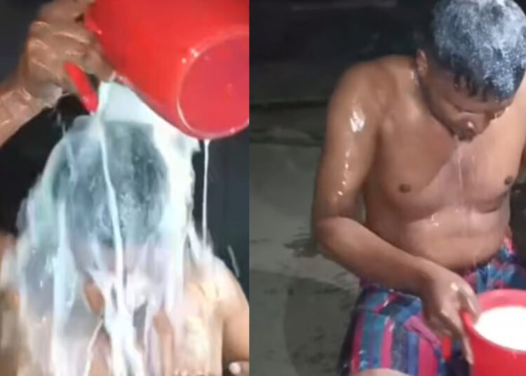 ওই সালিশেই উভয় পক্ষের সম্মতিক্রমে ফরহাদ হোসেন তার স্ত্রীকে খোলা তালাক দিয়ে সর্ম্পকের বিচ্ছেদ ঘটায়। তালাক নামায় স্বাক্ষর দিয়েই ফরহাদ হোসেন ১১ কেজি দুধ দিয়ে গোসল করেন। গোসলের ধারণকৃত ভিডিও ২৯ এপ্রিল তার সহপাঠিরা ফেসবুকে পোস্ট করেন। সোসাল মিডিয়ায় পোস্ট করায় বিষয়টি আলোচিত হয়ে উঠে। ঘটনা জানাজানি হলে ফরহাদের বাড়ীতে উৎসুক জনতার ভীড় জমে।