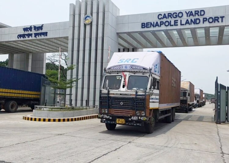 বেনাপোল স্থলবন্দরের তথ্য অনুযায়ী, ২০২৫–২৬ অর্থবছরের প্রথম আট মাসে ৬৮ হাজার ৮৬টি ট্রাকে মোট পণ্য আমদানি-রপ্তানি হয়েছে ১২ লাখ ৩৫ হাজার ৫২১ দশমিক ৮৪ মেট্রিক টন। এর মধ্যে আমদানি হয়েছে ১১ লাখ ১০ হাজার ৯০৩ দশমিক ৮১ মেট্রিক টন এবং রপ্তানি হয়েছে ১ লাখ ২৪ হাজার ৬১৮ দশমিক ৬১ মেট্রিক টন পণ্য।