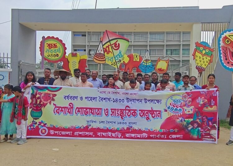 বাঙালির চিরায়ত ঐতিহ্য, সংস্কৃতি ও অসাম্প্রদায়িক চেতনার অন্যতম প্রধান উৎসব পহেলা বৈশাখ উপলক্ষে রাঙামাটির বাঘাইছড়িতে বর্ণিল আয়োজনের মধ্য দিয়ে বাংলা নববর্ষ ১৪৩৩ কে স্বাগত জানানো হয়েছে। উপজেলা প্রশাসনের উদ্যোগে আয়োজিত এ উৎসবমুখর কর্মসূচিতে অংশ নেয় বিভিন্ন শ্রেণি-পেশার মানুষ, যা এক প্রাণবন্ত মিলনমেলায় রূপ নেয়।