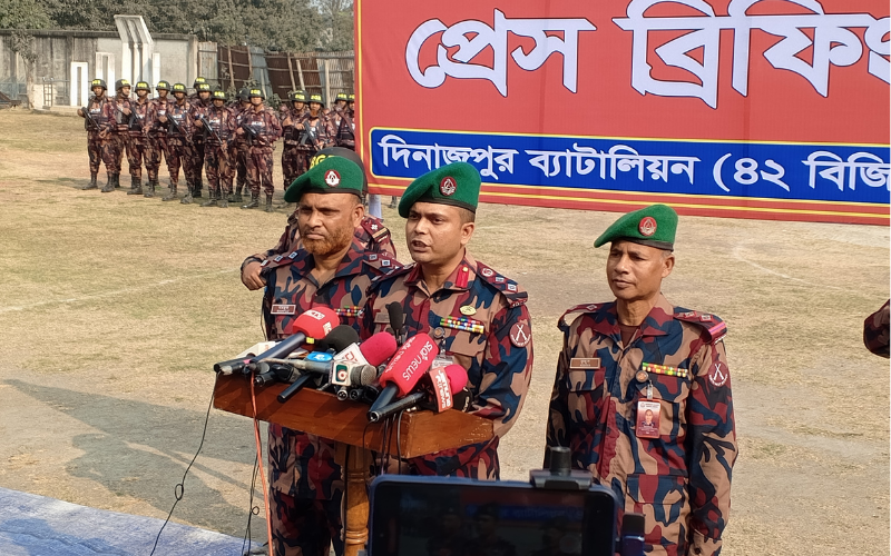 আসন্ন জাতীয় সংসদ নির্বাচন ঘিরে দিনাজপুরে বিজিবির মহড়া ও সংবাদ সম্মেলন