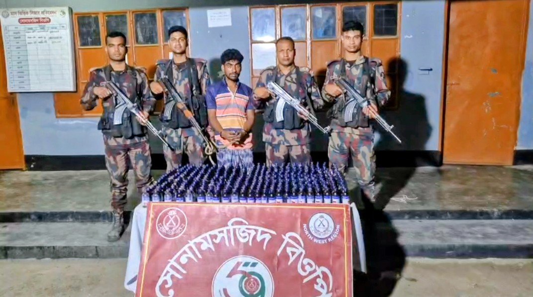 বুধবার সকালে মহানন্দা ব্যাটালিয়ন (৫৯ বিজিবি) জানায়, গতরাতে সোনামসজিদ বিওপির টহল দল রঘুনাথপুর হঠাৎপাড়া গ্রামে অভিযান চালিয়ে মো. আলীম (৩২) নামে এক ব্যক্তিকে ৩৭৭ বোতল Eskuf DX সিরাপসহ আটক করে। একই সময়ে চকপাড়া বিওপির টহল দল শাহবাজপুর সীমান্ত এলাকা থেকে আরও ৫০ বোতল সিরাপ ও ৩১৭০ পিস Tensiwin ট্যাবলেট জব্দ করে। ৫৯ বিজিবি অধিনায়ক লে. কর্নেল গোলাম কিবরিয়া বলেন, মাদকবিরোধী অভিযান অব্যাহত থাকবে।