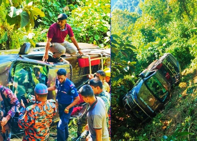 রোববার (৩০ নভেম্বর) দুপুরের দিকে সাজেক ইউনিয়নের শিজকছড়া এলাকায় এ দুর্ঘটনা ঘটেছে বলে নিশ্চিত করেছেন সাজেক থানার ওসি কানন সরকার।ওসি আরও বলেন, এসময় আহতদের উদ্ধার করে চিকিৎসার জন্য হাসপাতালে পাঠানো হয়েছে। উদ্ধার ও সেবা কার্যক্রমে অংশ নিয়েছে বাংলাদেশ সেনাবাহিনী, পুলিশ, বিজিবি ও ফায়ার সার্ভিসের সদস্যরা।