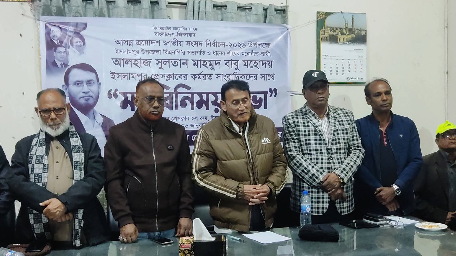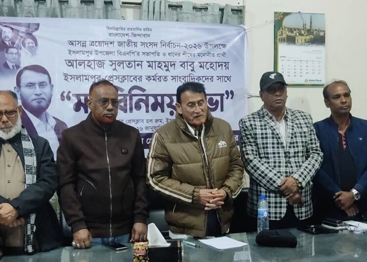 ইসলামপুর প্রেসক্লাবের সভাপতি মোরাদুজ্জামান মোরাদের সভাপতিত্বে সভায় প্রধান অতিথি ছিলেন ধানের শীষের প্রার্থী আলহাজ এ, ই সুলতান মাহমুদ বাবু। মতবিনিময় কালে তিনি তার নির্বাচনী কর্মপরিকল্পনা তুলে ধরেন। সুলতান মাহমুদ বাবু বলেন, গণতন্ত্র পুনরুদ্ধার এবং জনগণের হারানো ভোটাধিকার প্রতিষ্ঠার লক্ষ্যেই বিএনপি এই নির্বাচনে অংশ নিচ্ছে। একটি সুখী-সমৃদ্ধ ও বৈষম্যহীন আধুনিক ইসলামপুর গড়তে বদ্ধপরিকর। নির্বাচনের পরিবেশ সুষ্ঠু রাখতে এবং জনমতের সঠিক প্রতিফলন ঘটাতে তিনি গণমাধ্যমকর্মীদের বস্তুনিষ্ঠ ও সাহসী ভূমিকা পালনের আহ্বান জানান।