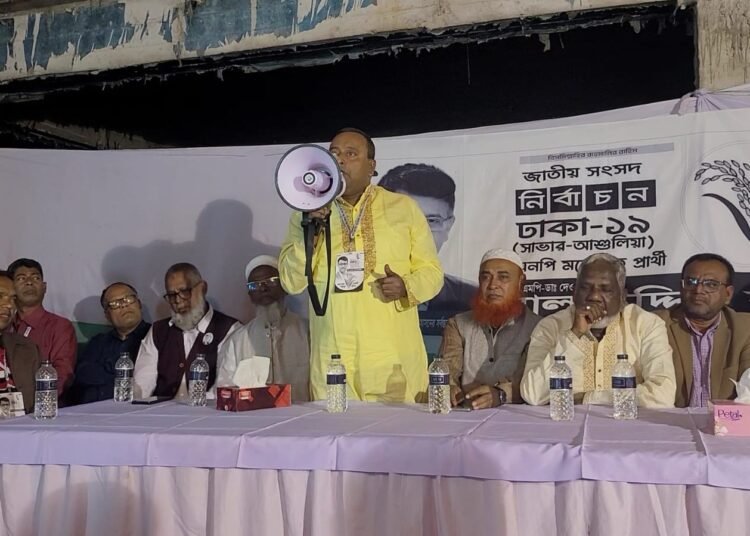 ঢাকা–১৯ আসনে বিএনপি মনোনীত প্রার্থী ডাক্তার দেওয়ান মোহাম্মদ সালাউদ্দিন বাবুর সমর্থনে সাভার পৌরসভার ৭ নম্বর ওয়ার্ডের শাহীবাগ এলাকায় এক নির্বাচনী সভা অনুষ্ঠিত হয়েছে। স্থানীয় নেতাকর্মী ও সমর্থকদের অংশগ্রহণে সভাটি প্রাণবন্ত হয়ে ওঠে।