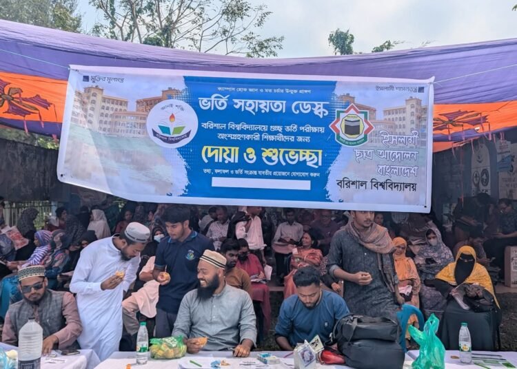 বরিশাল বিশ্ববিদ্যালয় ছাত্রশিবিরের সভাপতি বলেন, ইসলামি ছাত্র শিবির শিক্ষার্থীদের কল্যাণে কাজ করে থাকেন। প্রতিটা ভর্তি পরিক্ষা আমার বসে থাকি। অভিভাবক দের আসন ব্যবস্থা এবং শিক্ষার্থীদের ব্যাগ রাখার ব্যবস্থা করা হয়ে। আমার ফ্রিতে শিক্ষার্থীদের ও অভিভাবকদের ইসলামী ছাত্রশিবি প্রকাশনা ও বিশুদ্ধ পানির ব্যবস্থা রাখা হয়েছে।