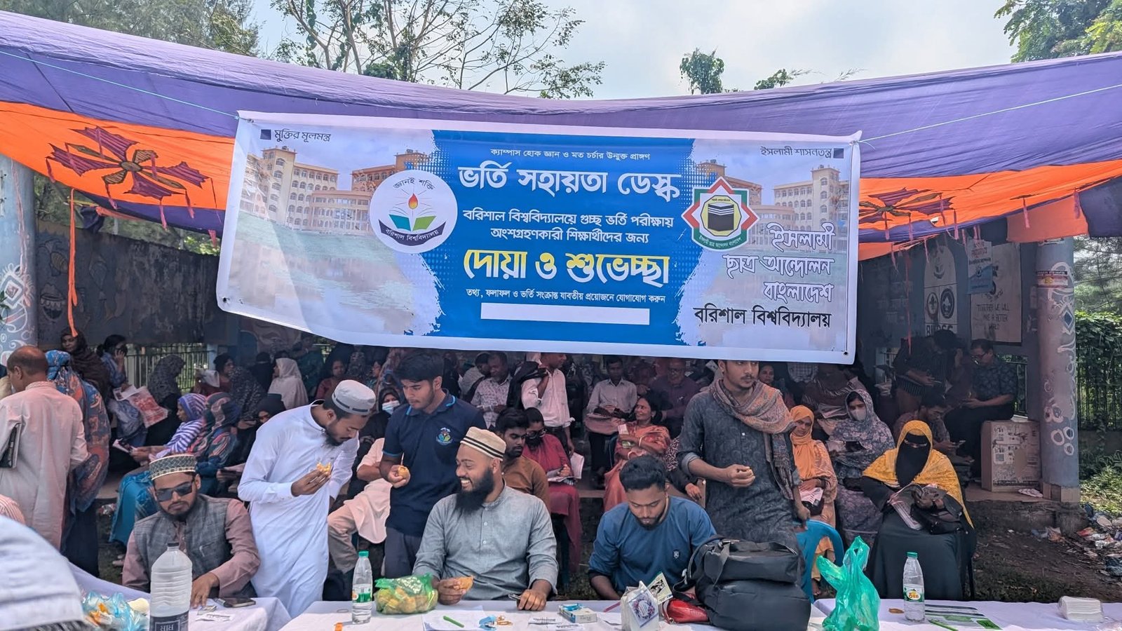 বরিশাল বিশ্ববিদ্যালয় ছাত্রশিবিরের সভাপতি বলেন, ইসলামি ছাত্র শিবির শিক্ষার্থীদের কল্যাণে কাজ করে থাকেন। প্রতিটা ভর্তি পরিক্ষা আমার বসে থাকি। অভিভাবক দের আসন ব্যবস্থা এবং শিক্ষার্থীদের ব্যাগ রাখার ব্যবস্থা করা হয়ে। আমার ফ্রিতে শিক্ষার্থীদের ও অভিভাবকদের ইসলামী ছাত্রশিবি প্রকাশনা ও বিশুদ্ধ পানির ব্যবস্থা রাখা হয়েছে।