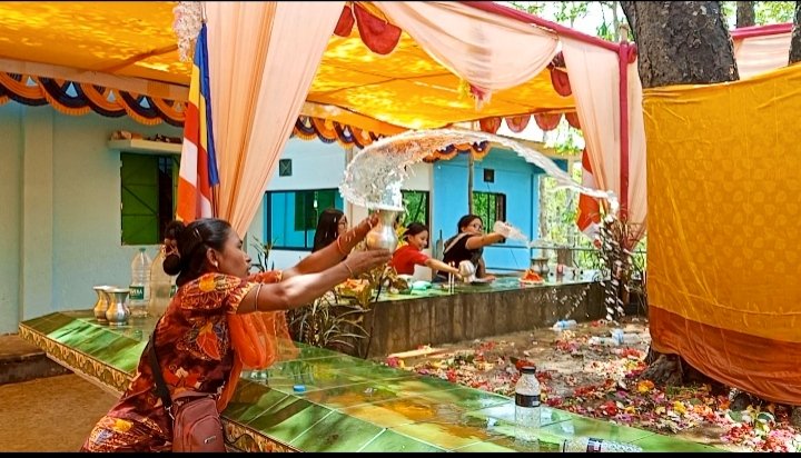 বৌদ্ধ ধর্মাবলম্বীদের বিশ্বাস অনুযায়ী, গৌতম বুদ্ধ যে বৃক্ষের নিচে বসে বোধি বা জ্ঞান লাভ করেছিলেন, সেই স্মৃতিকে অম্লান রাখতেই পালিত হয় ‘জল ঢালা’ উৎসব।সকাল থেকে দূর-দূরান্ত থেকে আসা শত শত পুণ্যার্থী সারিবদ্ধভাবে জাদি প্রাঙ্গণে অবস্থিত অর্ধশতবর্ষী পবিত্র বোধিবৃক্ষে জলসেচন করেন।