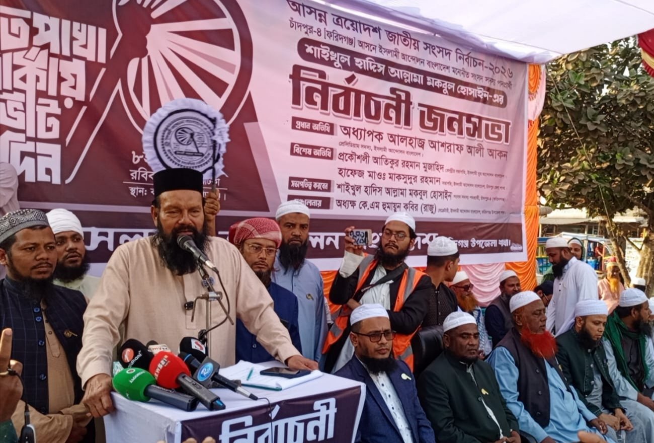 তিনি আরও বলেন, ইসলামী আন্দোলন ক্ষমতার রাজনীতি নয়, নীতির রাজনীতি করতে চায়। দেশের ৭০ হাজার মাদ্রাসা ও ২২ লাখ আলেম-ওলামা ইসলামী শাসনের জন্য নিয়োজিত; তাই ইসলামী আইন ছাড়া টেকসই শাসনব্যবস্থা সম্ভব নয়। আগামী ১২ ফেব্রুয়ারি ত্রয়োদশ জাতীয় সংসদ নির্বাচনে পীর সাহেব চরমোনাই নেতৃত্বাধীন প্রার্থীর প্রতি ভোট দিয়ে জনগণ এই বার্তা দিতে পারবে।