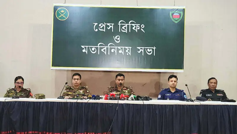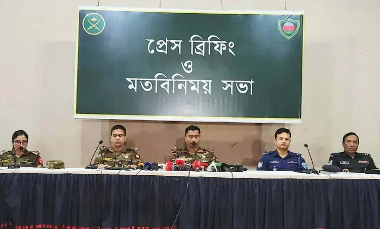 মতবিনিময় সভার পূর্বে অনুষ্ঠিত সংবাদ সম্মেলনে গেল কয়েক দিনে সেনাবাহিনীর নেতৃত্বে যৌথবাহিনীর পরিচালিত অভিযানের চিত্র তুলে ধরেন লেফটেন্যান্ট কর্ণেল সুতফা জামান।