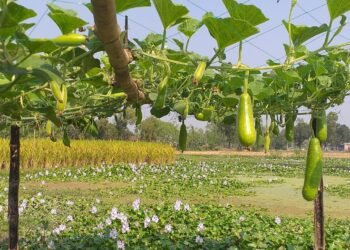 সুলতান মাহমুদ, দিনাজপুর : দিনাজপুর খানসামার ইছামতি নদীর পাঁচ শতক জায়গা জুড়ে ভাসমান পদ্ধতিতে লাউসহ বিভিন্ন সবজি চাষ করে দৃষ্টান্ত...