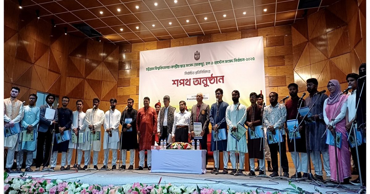 দীর্ঘ ৩৫ বছর পর অনুষ্ঠিত চট্টগ্রাম বিশ্ববিদ্যালয় কেন্দ্রীয় ছাত্র সংসদ (চাকসু) নির্বাচনের নবনির্বাচিত ২৫ জন প্রতিনিধি বৃহস্পতিবার শপথ নিয়েছেন। তবে ইসলামী ছাত্রশিবির সমর্থিত প্যানেলের নির্বাহী সদস্য আকাশ দাস শপথগ্রহণ অনুষ্ঠানে উপস্থিত ছিলেন না।